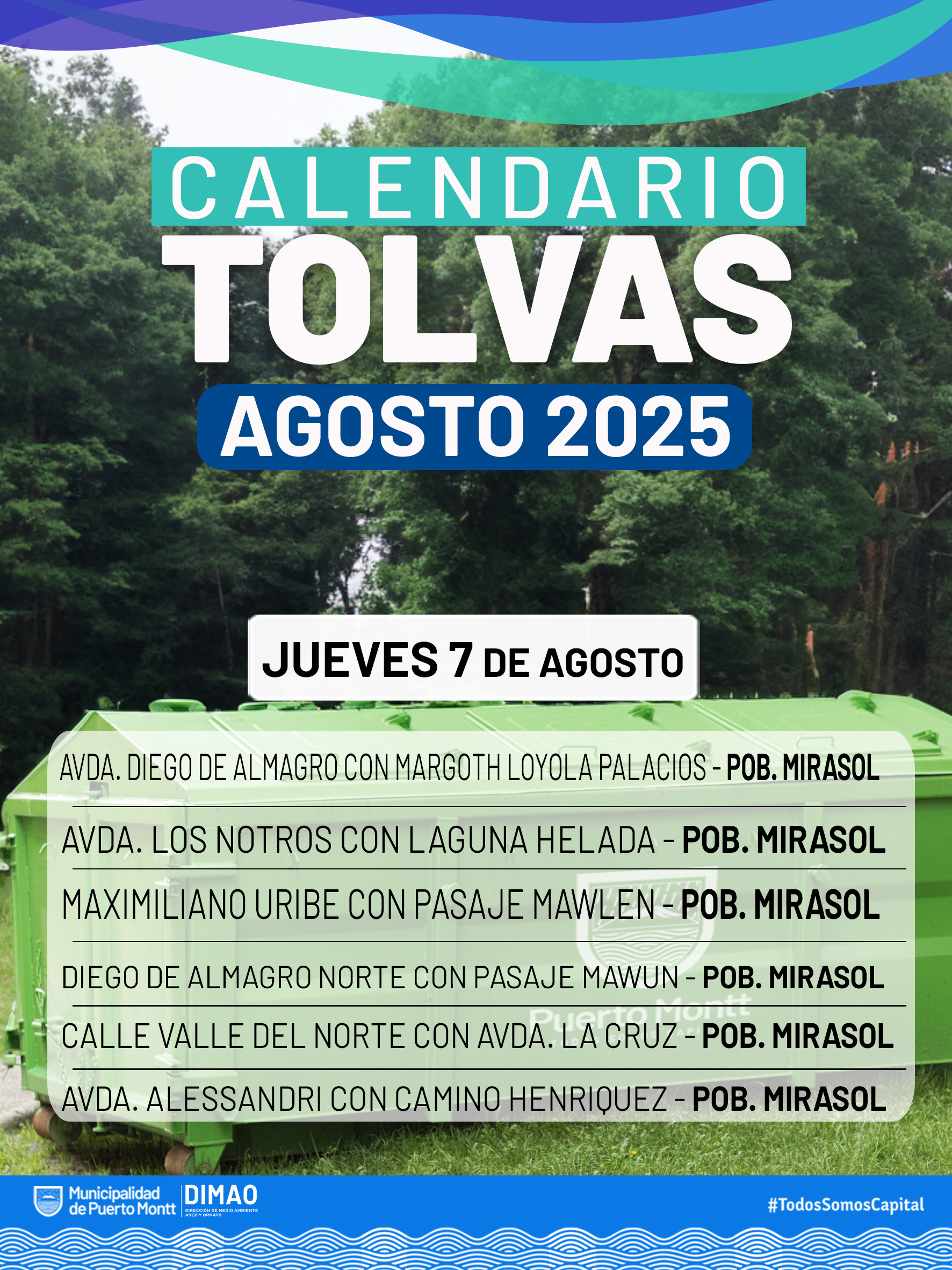 Revise el calendario de tolvas de esta semana, para depositar sus residuos voluminosos.