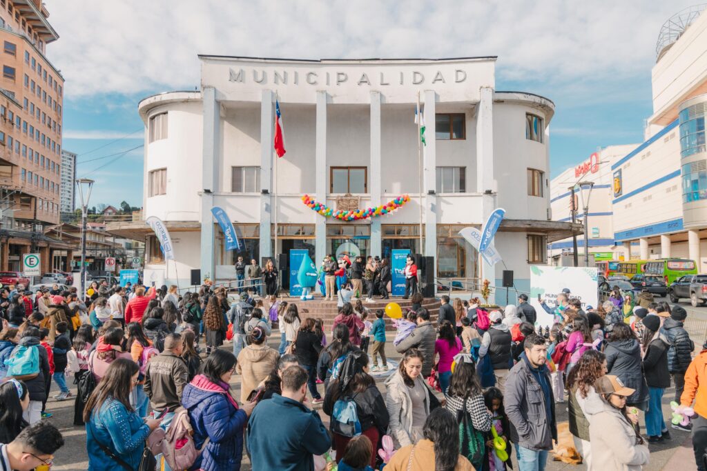 Puerto Montt, 11 de agosto de 2025.- Cientos de menores se congregaron frente a la Municipalidad de Puerto Montt para bailar, cantar y jugar, como parte de las actividades organizadas para celebrar el Día del Niño.