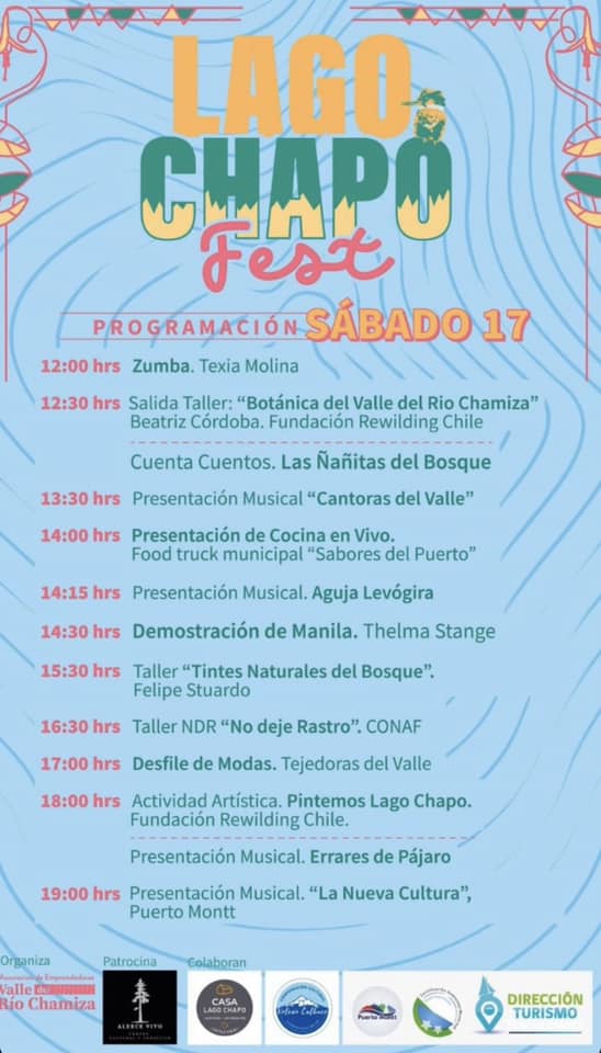 El evento Lago Chapo Fest contará con la participación de destacados expositores musicales, guías locales con experiencia y pertinencia territorial, una gran muestra artesanal y una presentación gastronómica, desarrollada por el foodtruck “Sabores del Puerto” de la DITUR. Además, habrá excursiones guiadas por el bosque, poniendo así en valor el patrimonio natural que caracteriza a este sector precordillerano, que durante todo el año, recibe a miles de visitantes y turistas.