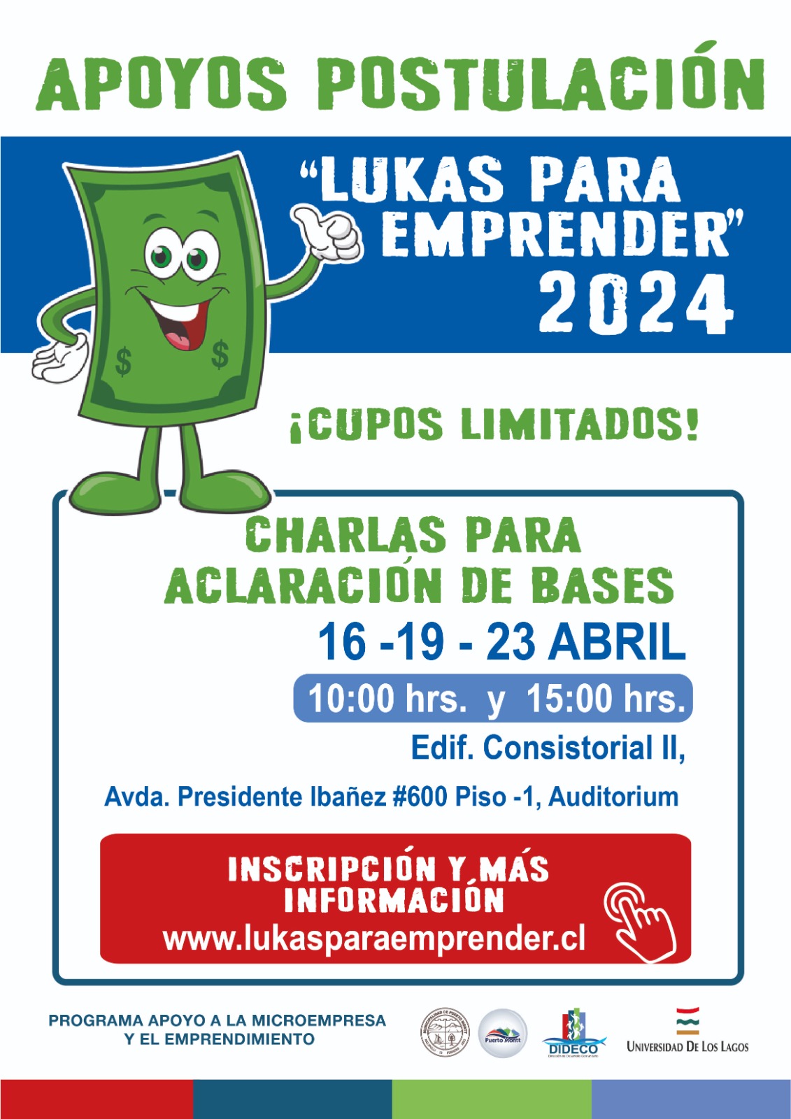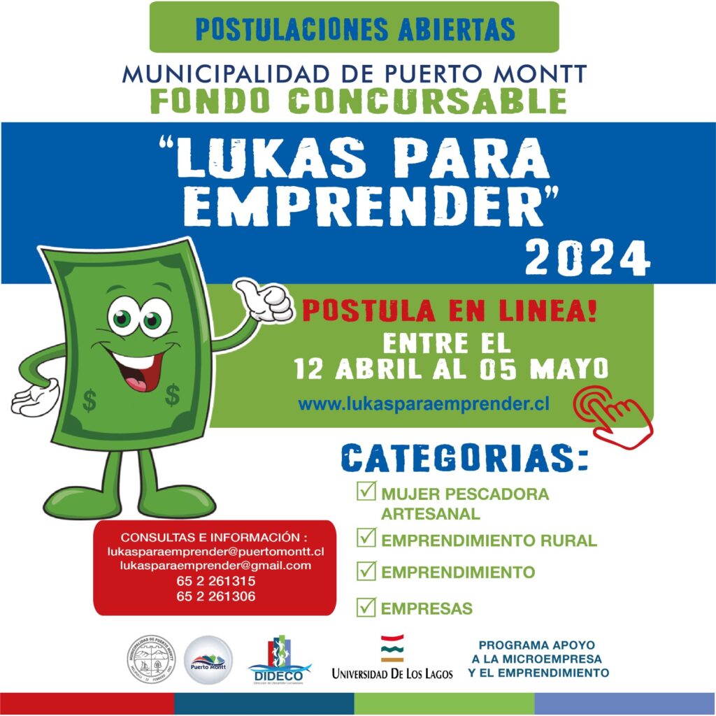 Postula en linea entre el 15 de abril al 05 de mayo para el fondo concursable Lukas para Emprender 2024